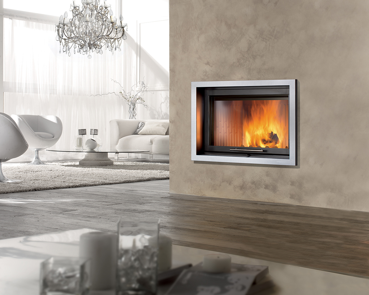 La grande vitre de ce foyer au style moderne donne une dimension supérieure à la magie du feu.La porte escamotable se relève pour alimenter le feu en bois. A l’affiche : plaisir des yeux, confort d’utilisation et efficacité thermique générée par la postcombustion et l’habillage du foyer en pierres réfractaires. Grâce aux kits optionnels proposés, l’air chaud peut être distribué dans toute la maison au choix par convection naturelle ou forcée.